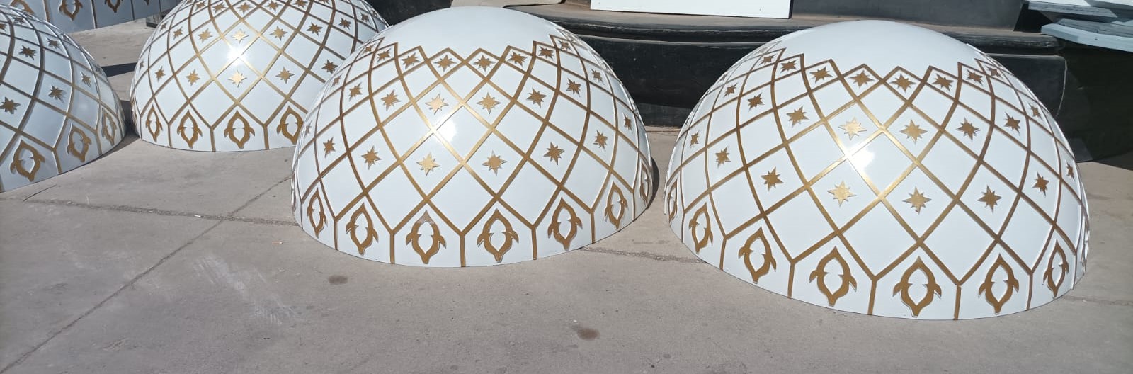 Ana Kubbe ve Yarım Kubbeler: Geleneksel kubbe kaplamalarının aksine, fiberglass kubbeler tek parça veya daha az ek yeriyle üretilebilir. Bu, su sızıntısı riskini en aza indirir ve uzun ömürlü bir çözüm sunar. Altın varaklı veya özel desenli yüzeyler uygulanarak, caminin manevi atmosferi güçlendirilir.